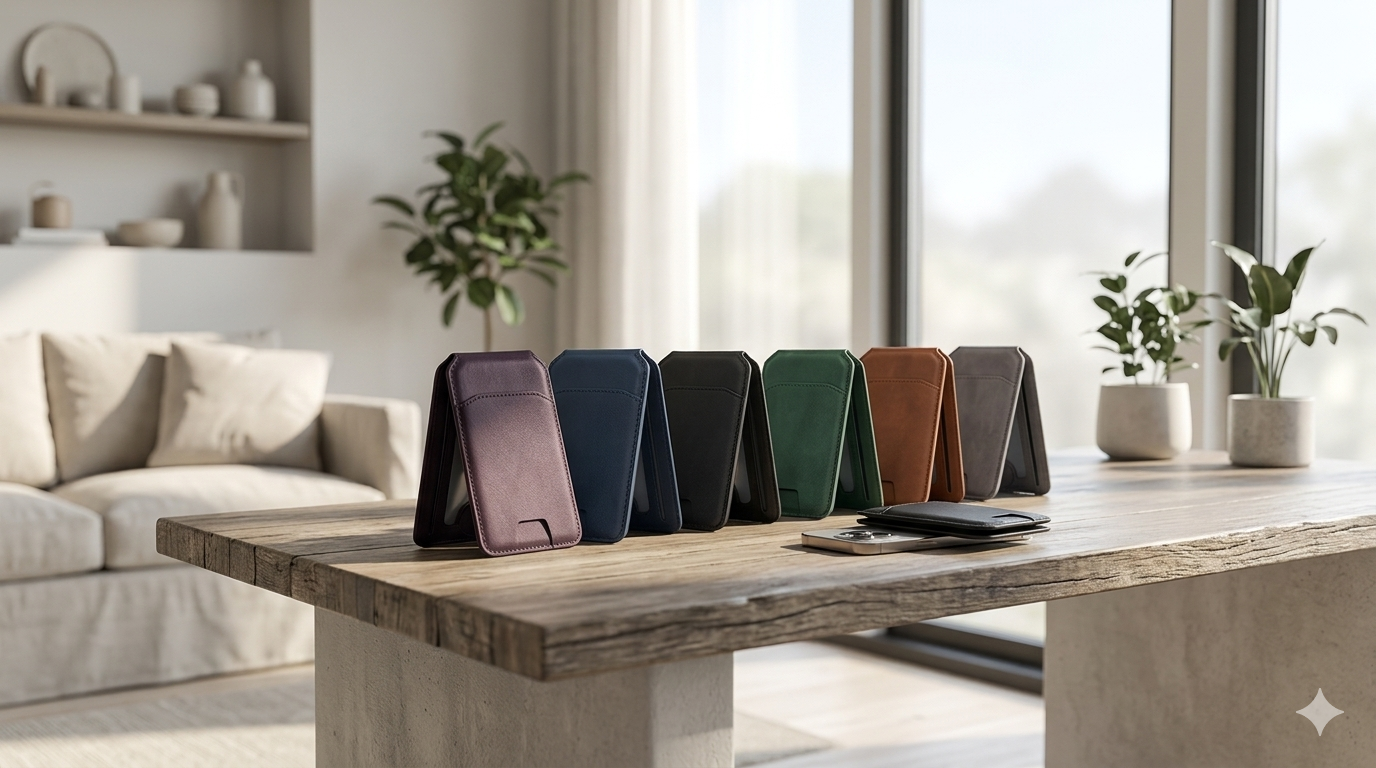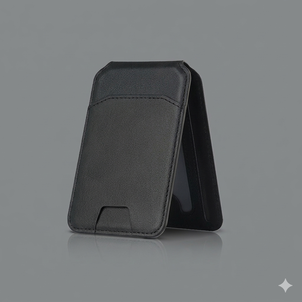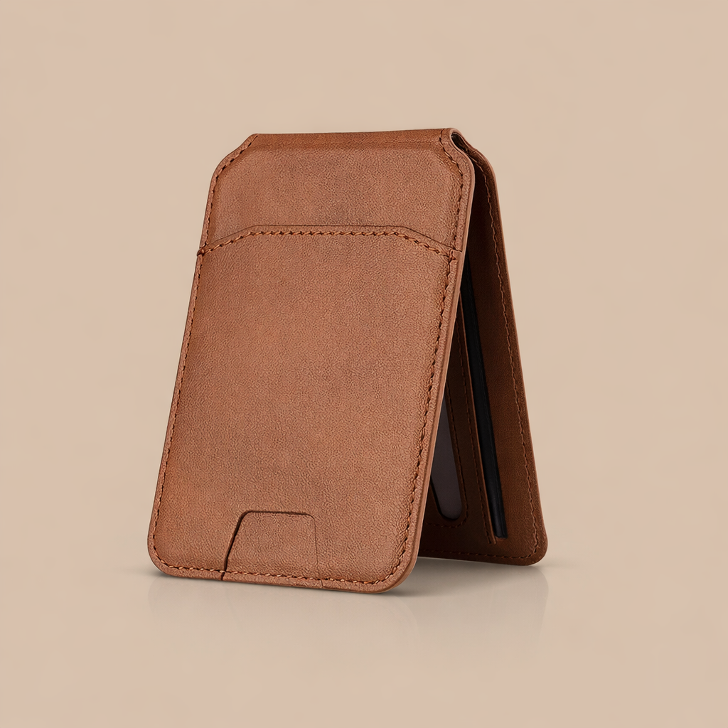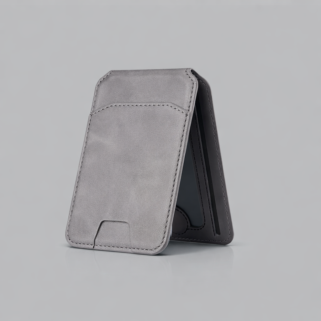 En MagSafe plånbok är ett magnetiskt tillbehör för iPhone som fästs direkt på telefonens baksida via Apples MagSafe-system. Det gör att du kan bära dina viktigaste kort tillsammans med telefonen utan att behöva en separat plånbok.